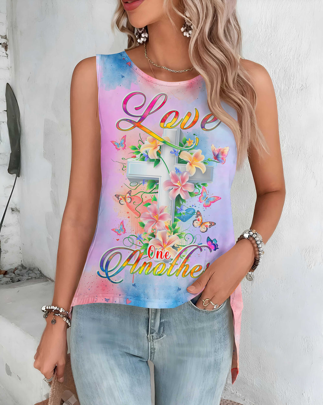 Love One Another All Over Print Cut Out Wrap Back Tank Top