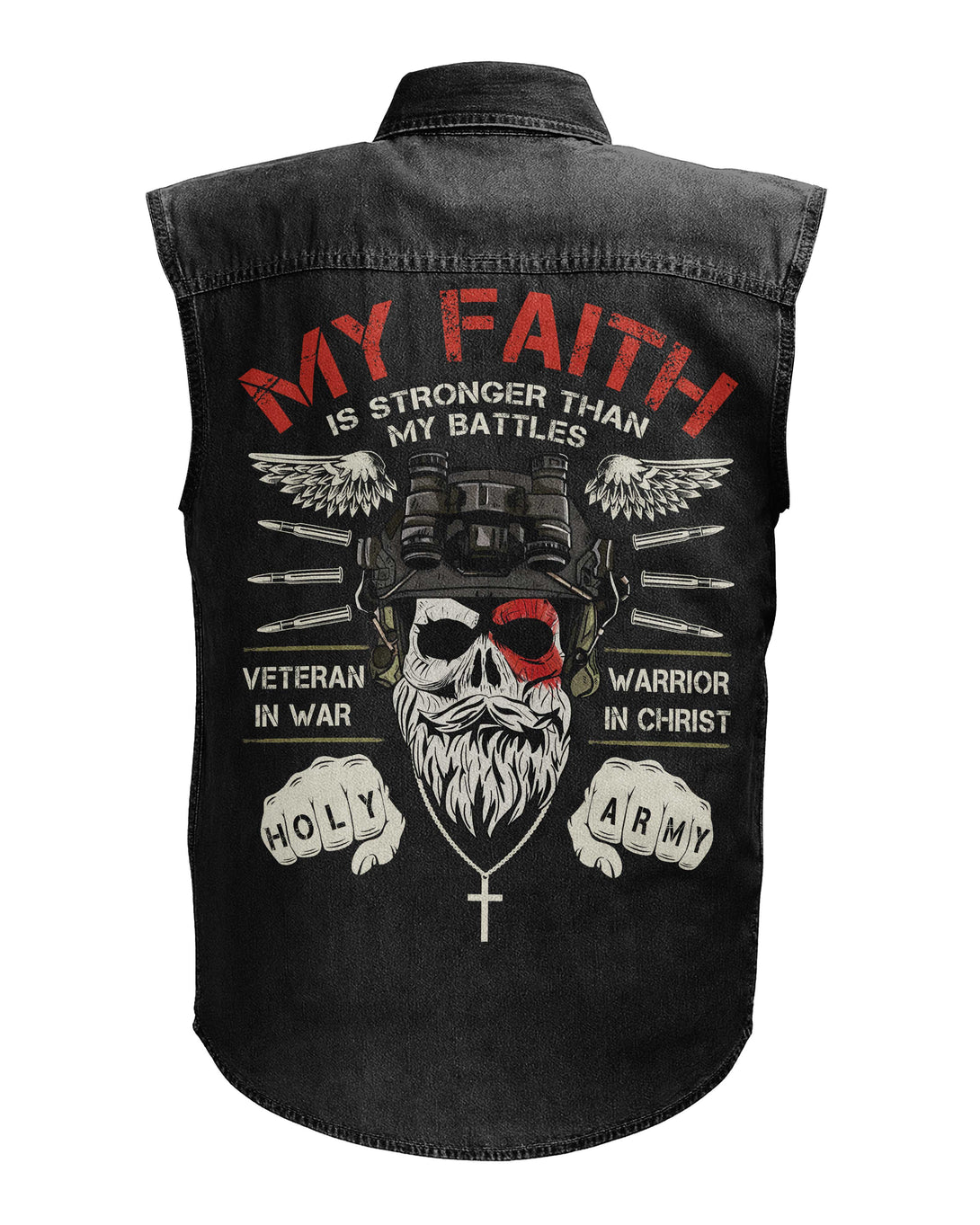 My Faith Is Stronger Than My Battles Sleevesless Denim Shirt
