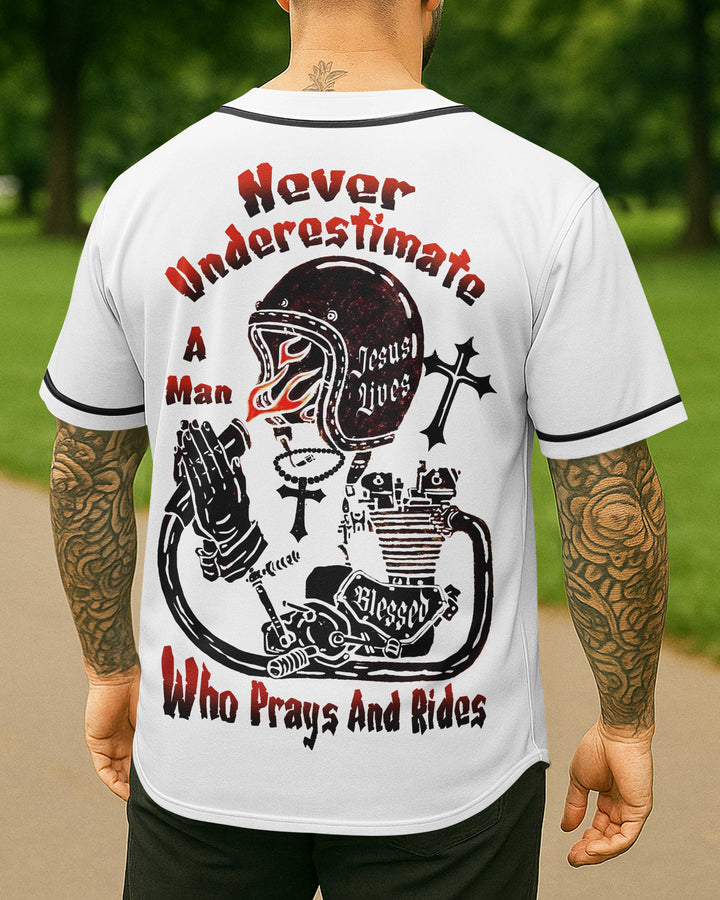 Never Underestimate A Man Who Prays And Rides All Over Print Jersey