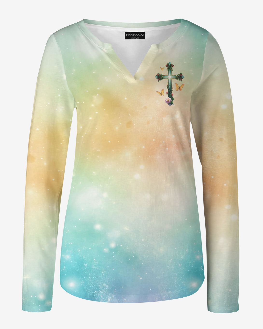 Nothing Can Separate Me From His Love All Over Print V-neck Long Sleeves Shirt