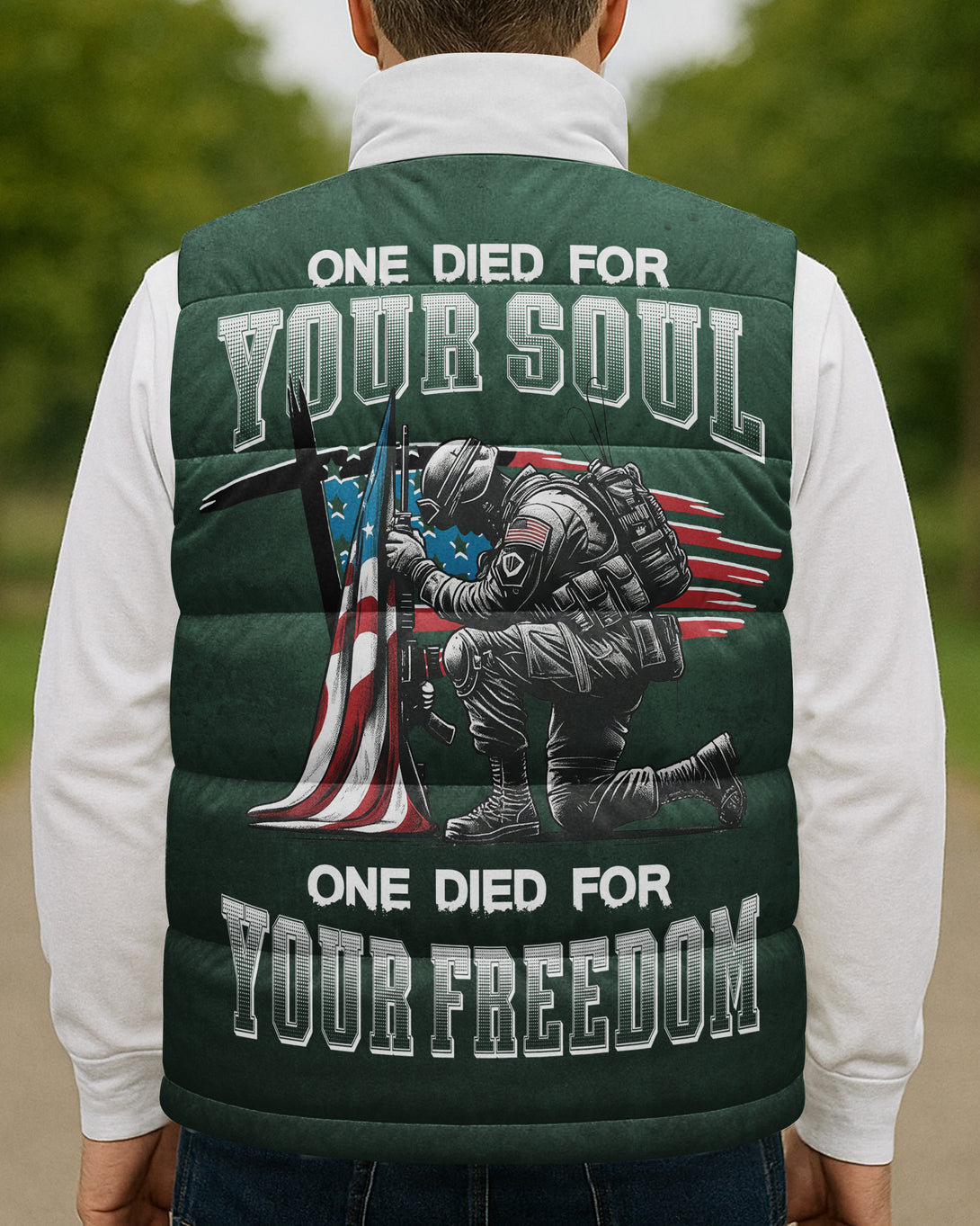 One Died For Your Soul One Died For Your Freedom Sleeveless Puffer Jacket