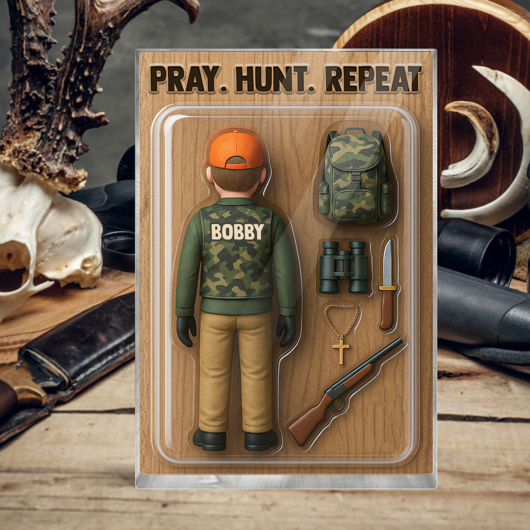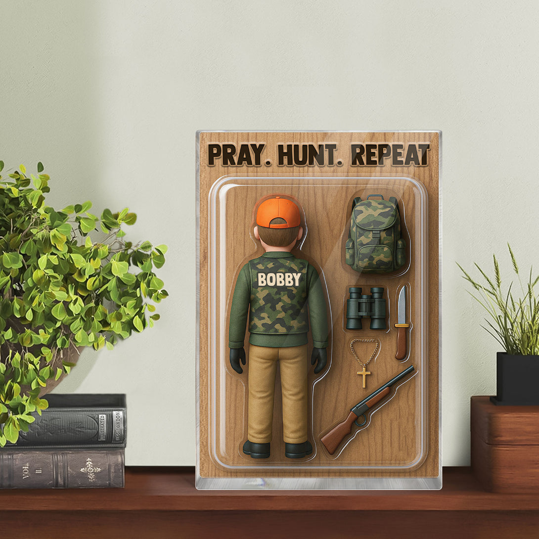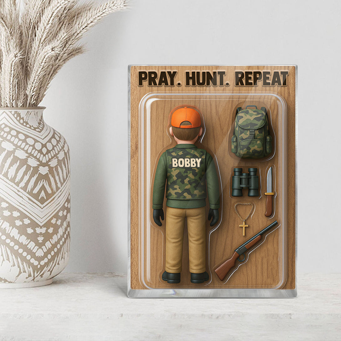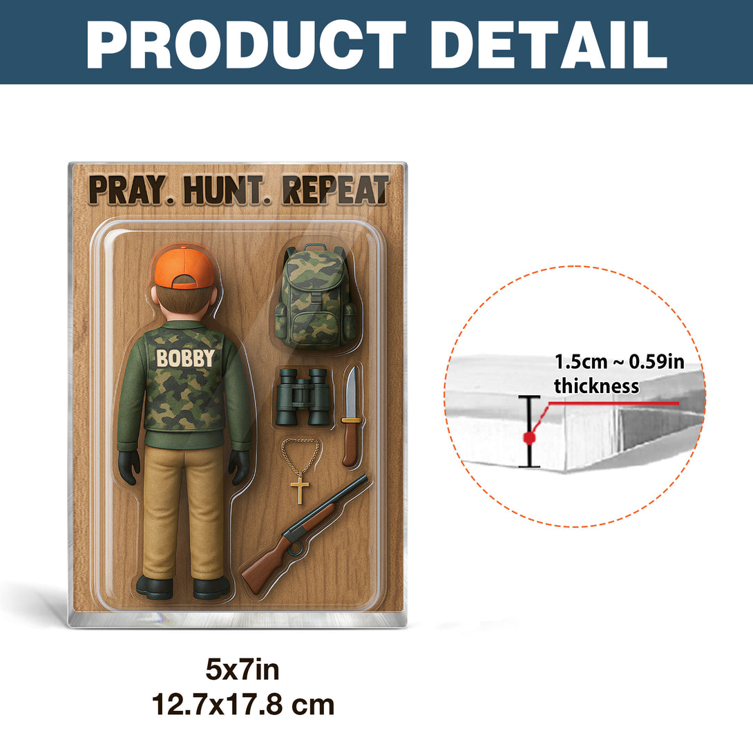 Pray Hunt Repeat Personalized Acrylic Block, Custom Name Gift