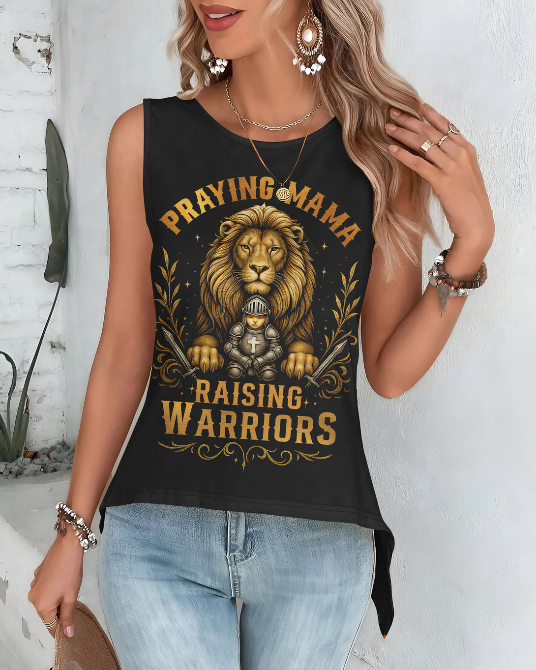 Praying Mama Raising Warriors Cut Out Wrap Back Tank Top