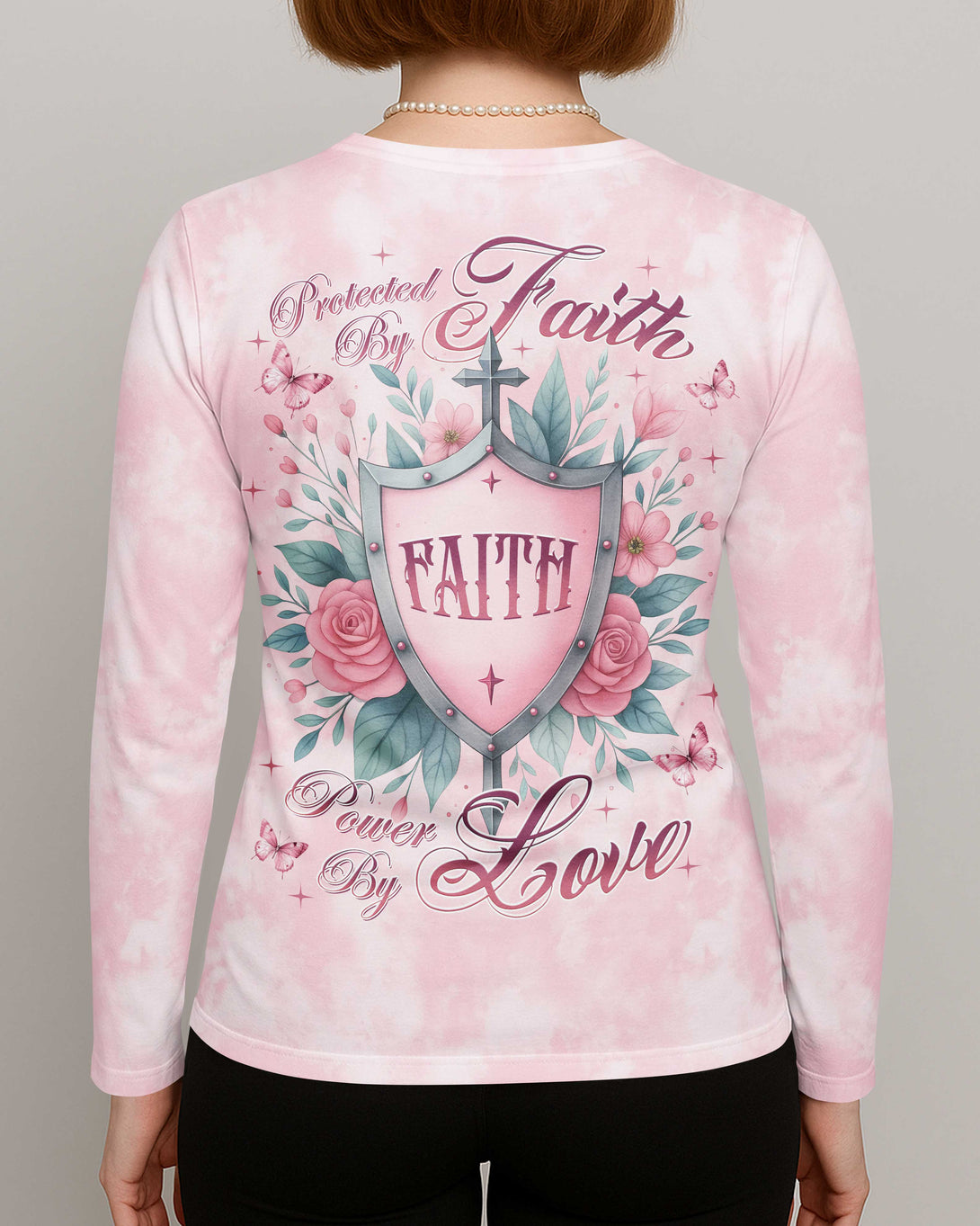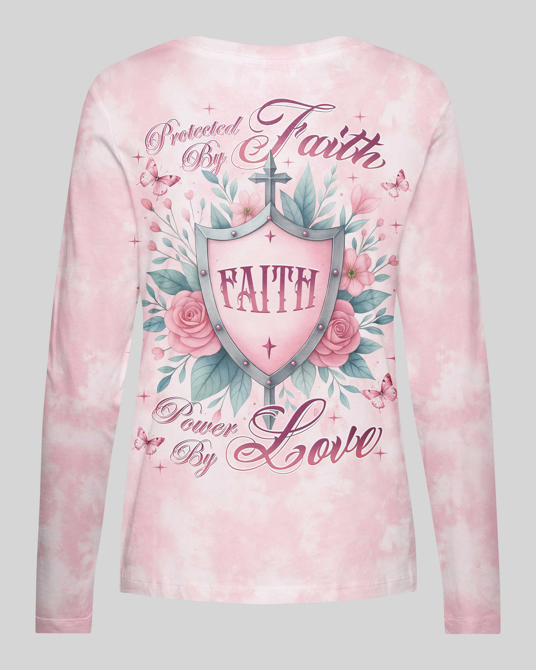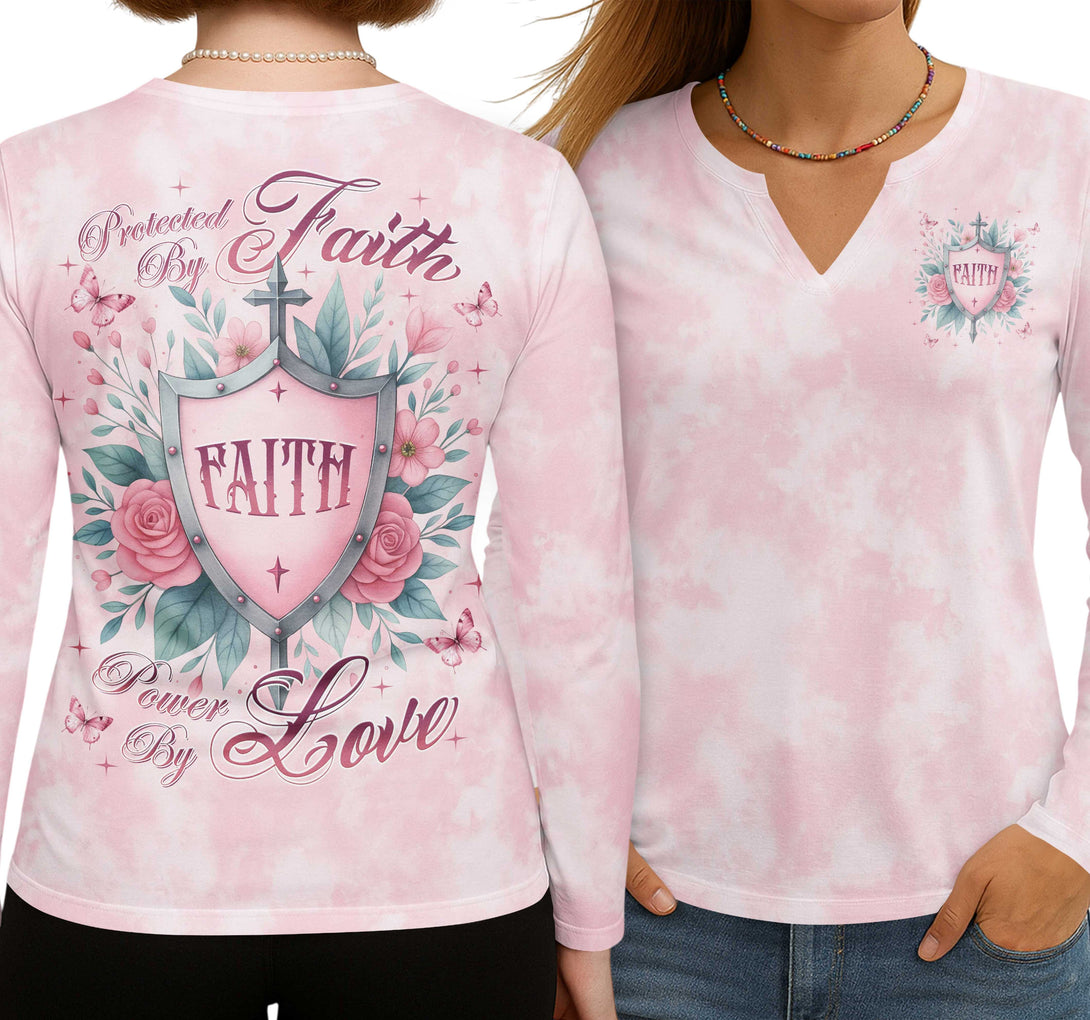 Protected By Faith Power By Love All Over Print V-neck Long Sleeves Shirt