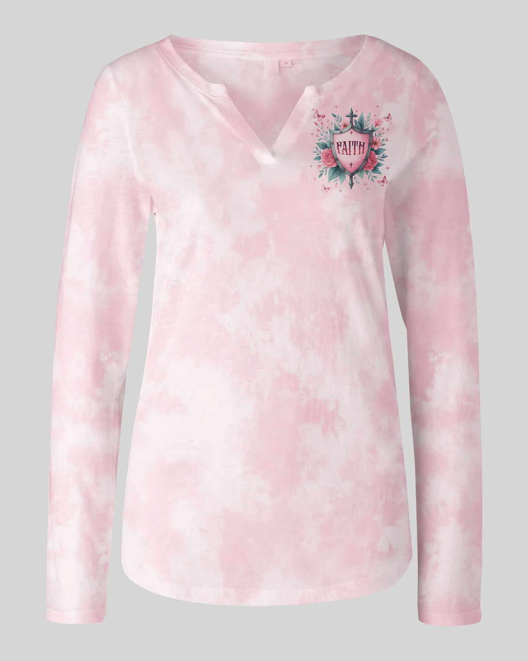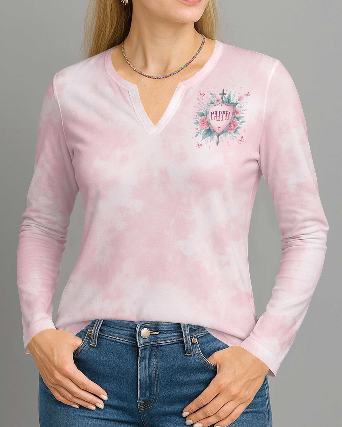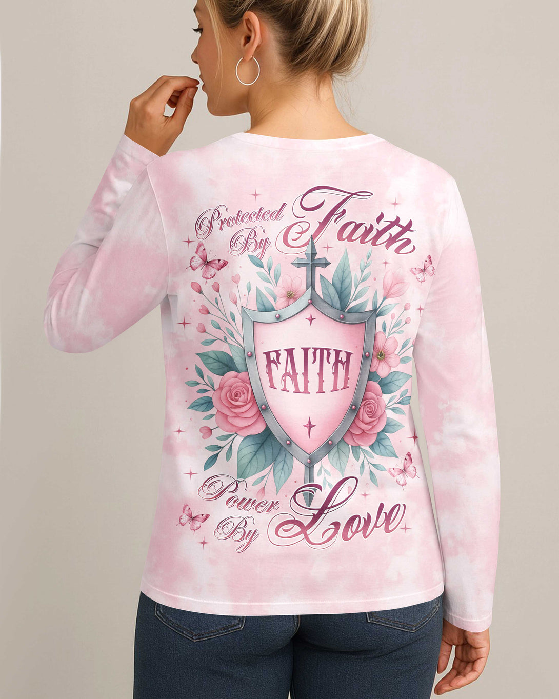 Protected By Faith Power By Love All Over Print V-neck Long Sleeves Shirt