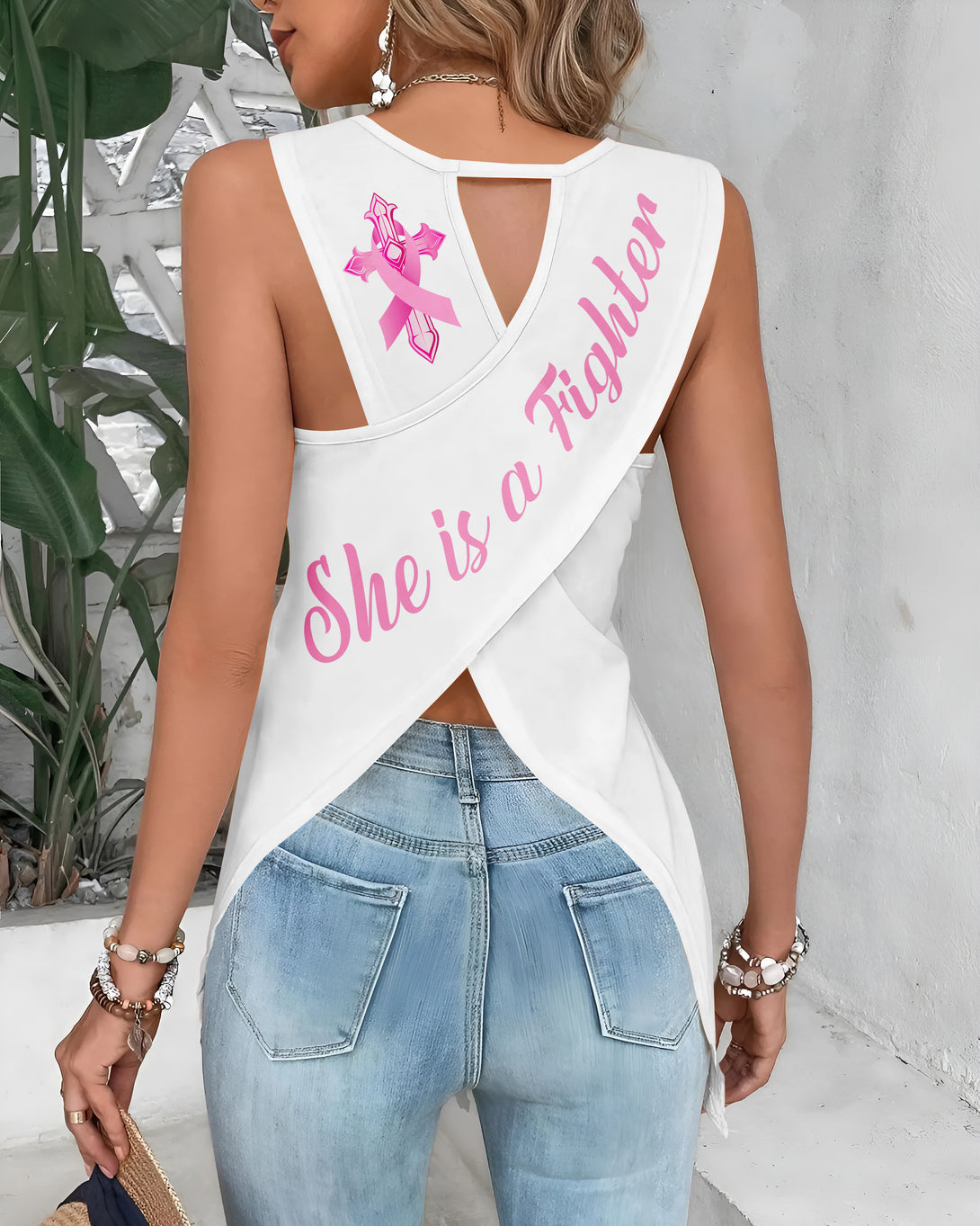 She Is A Fighter Crop Out Wrap Back Tank Top