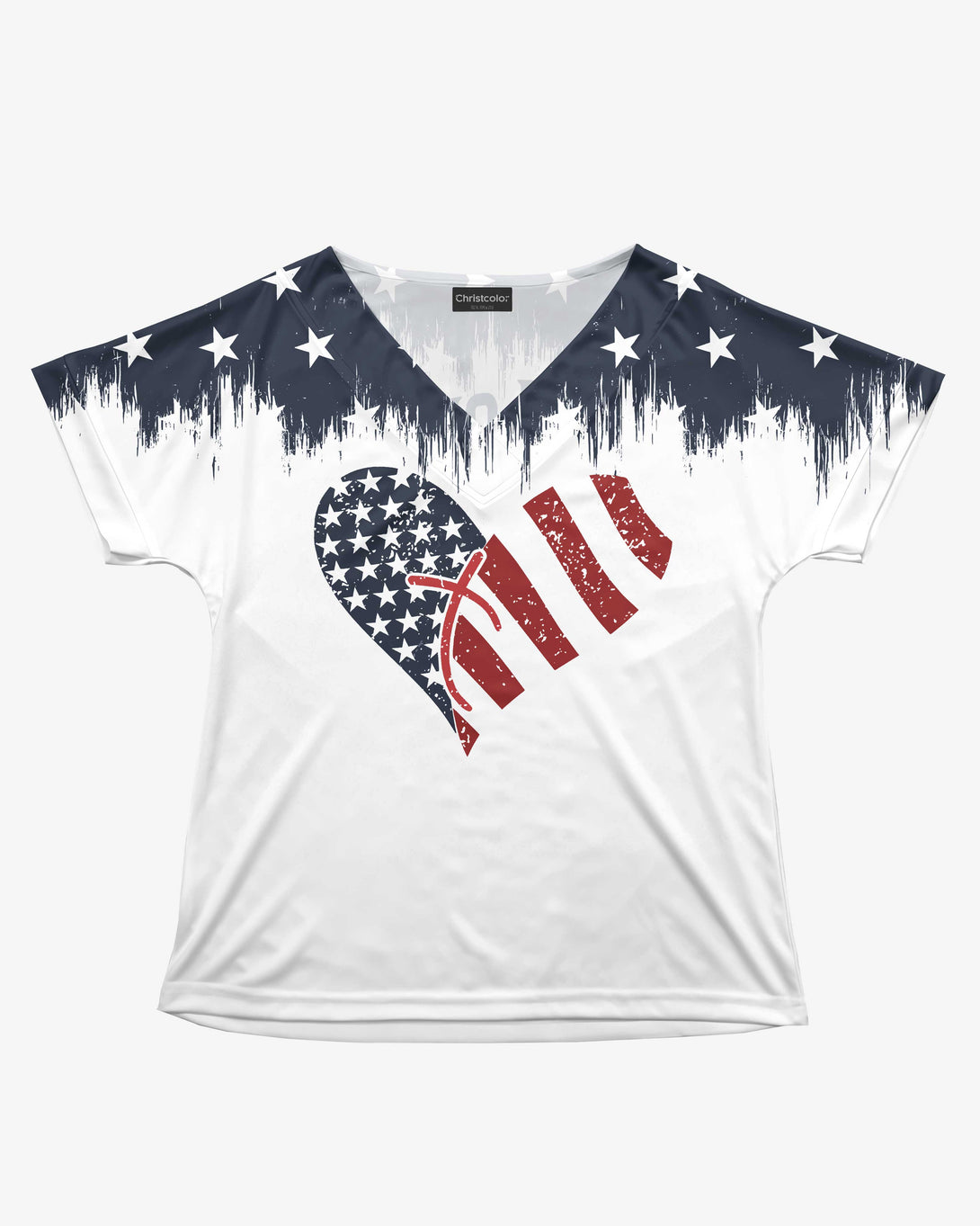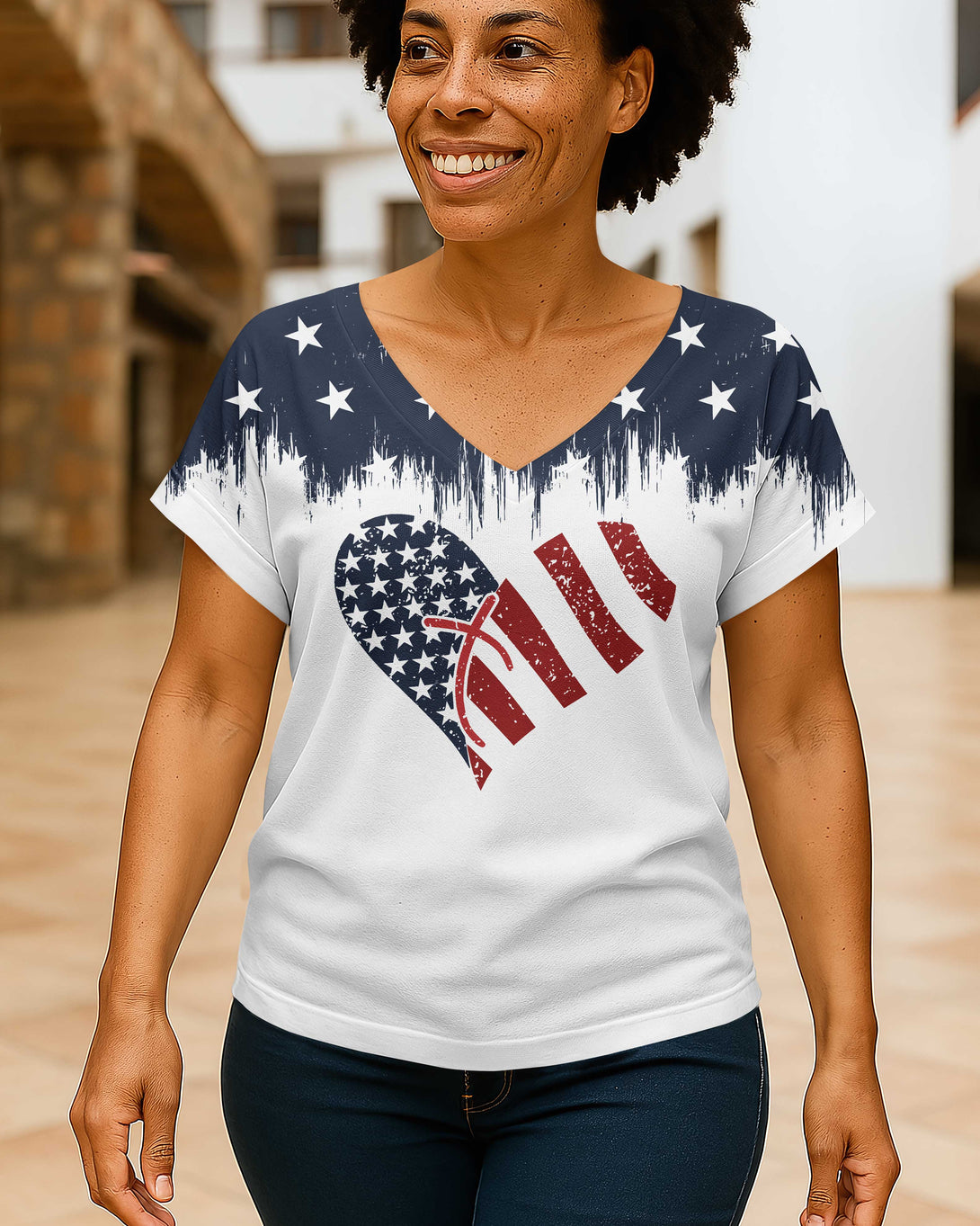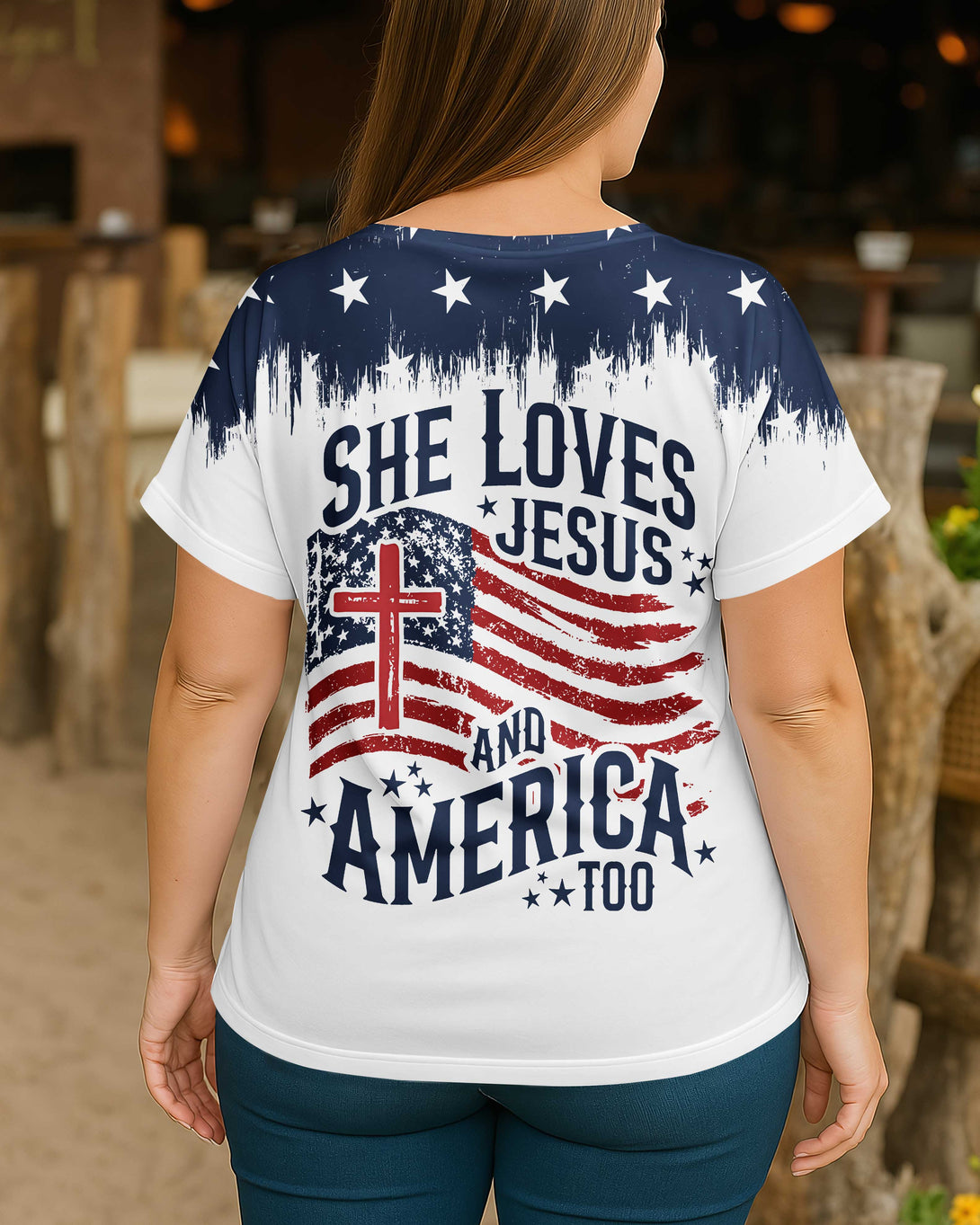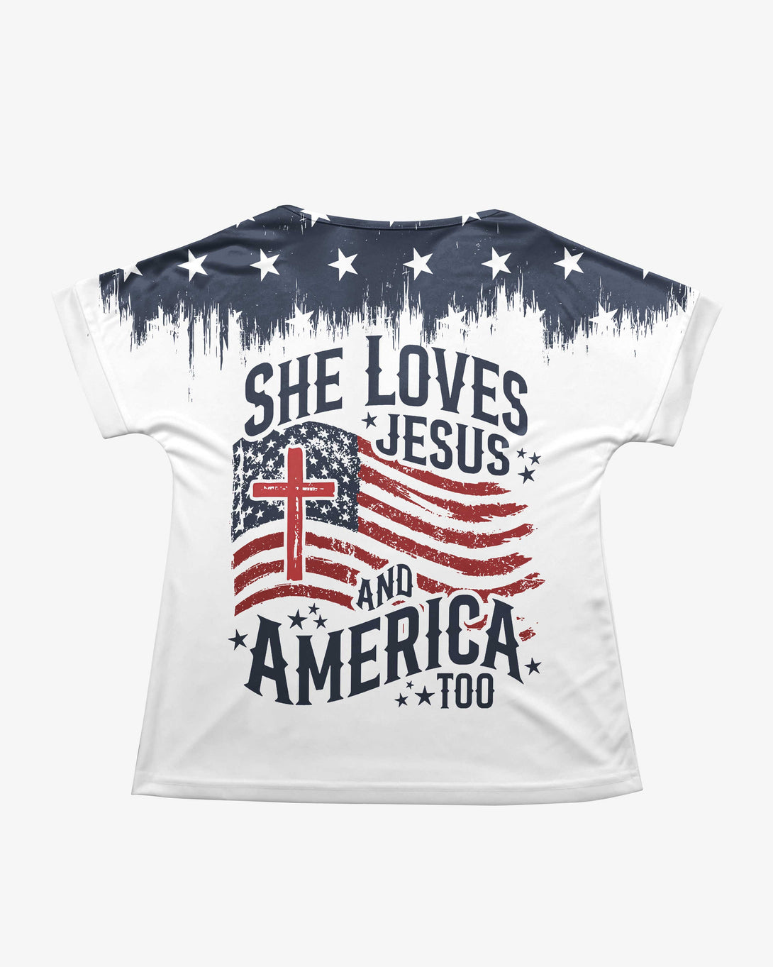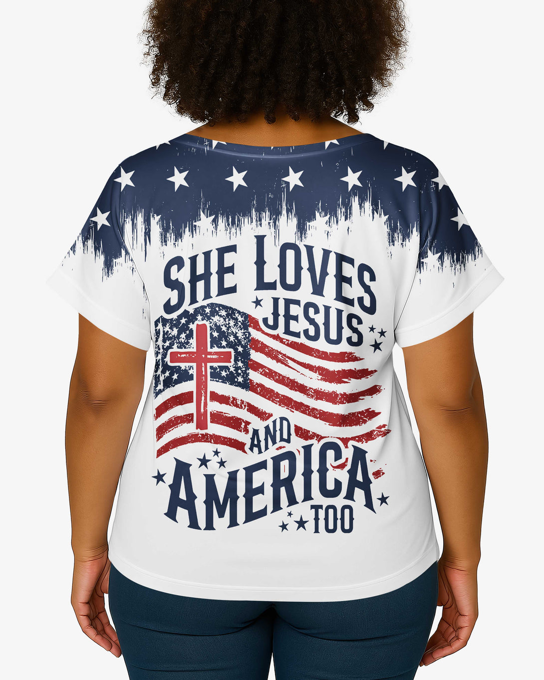 She Loves Jesus And America Too All Over Print V-neck Dolman Sleeves Shirt