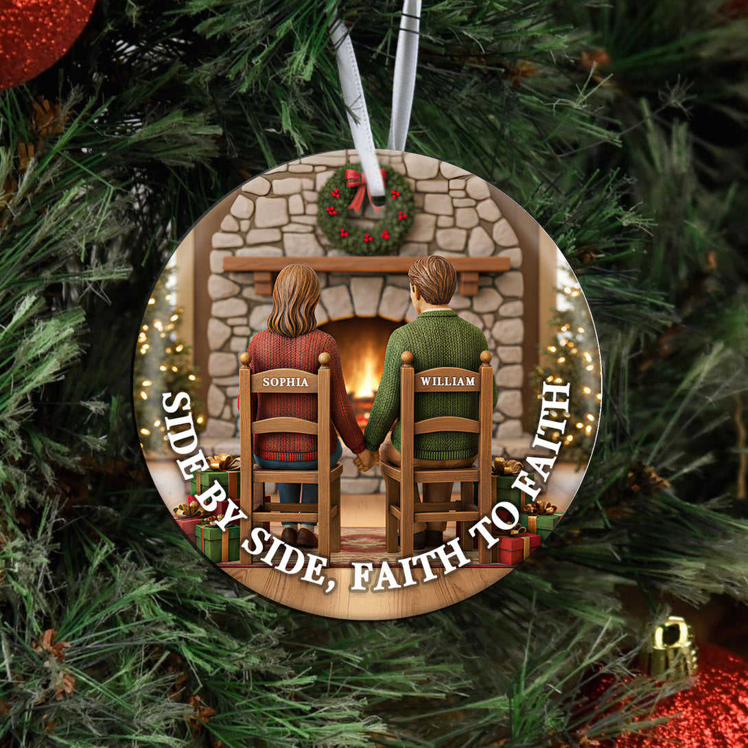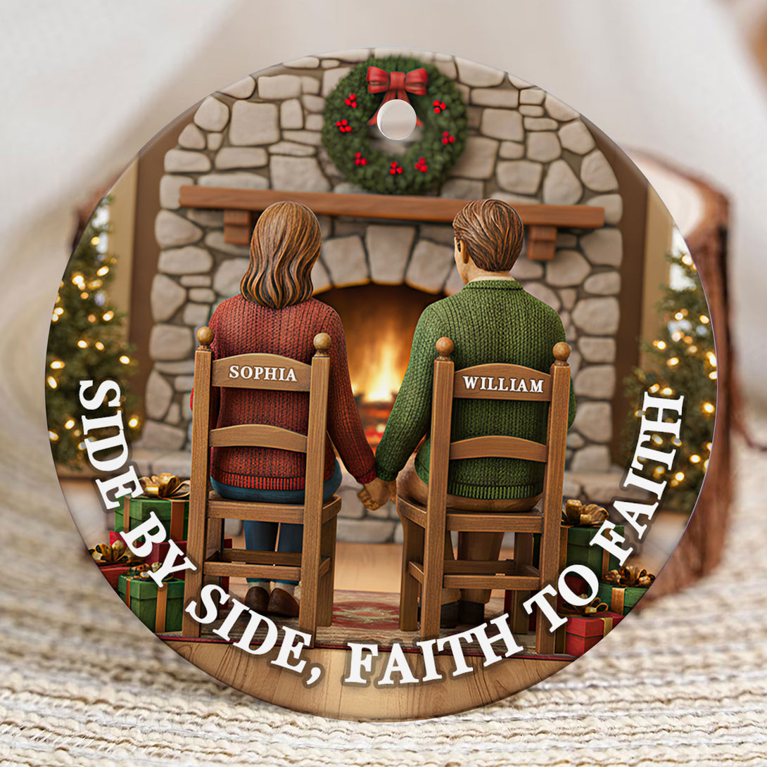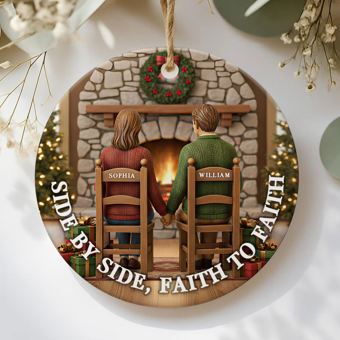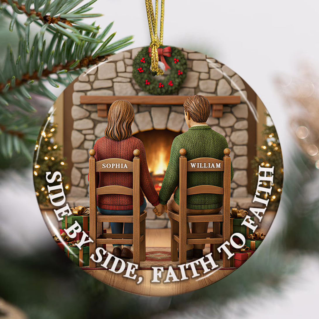 Side By Side Faith To Faith Personalized Ceramic Ornament, Custom Couple Name