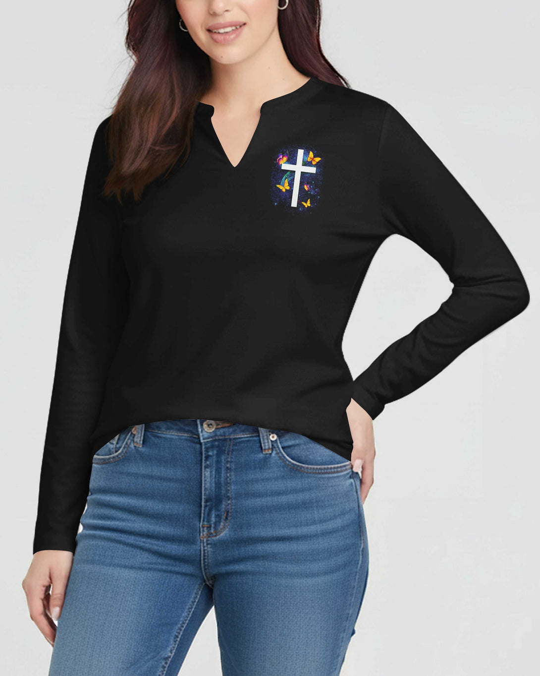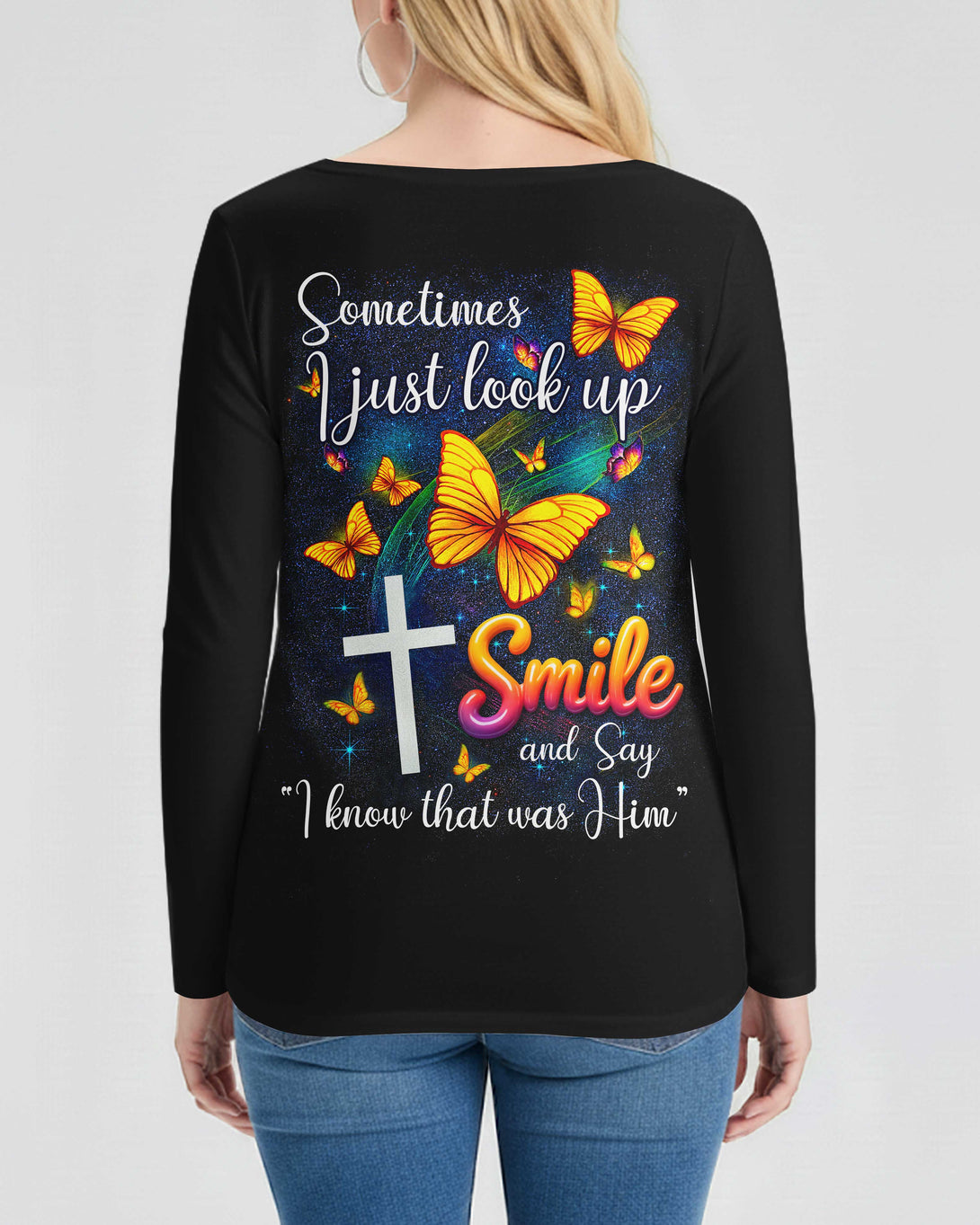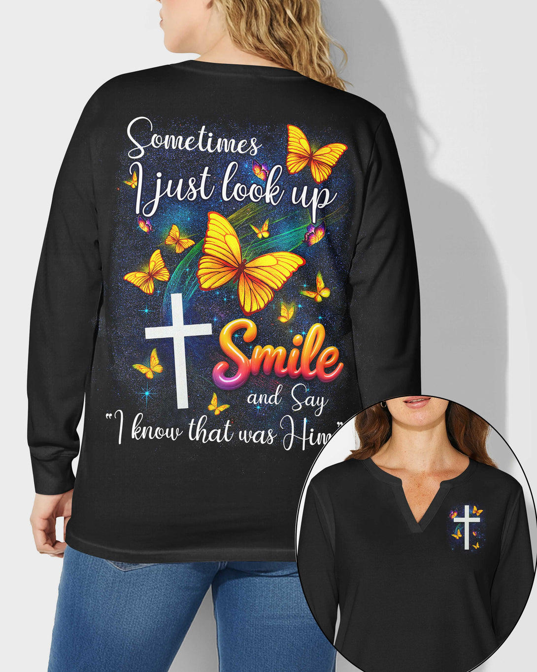 Sometimes I Just Look Up V-neck Long Sleeves Shirt