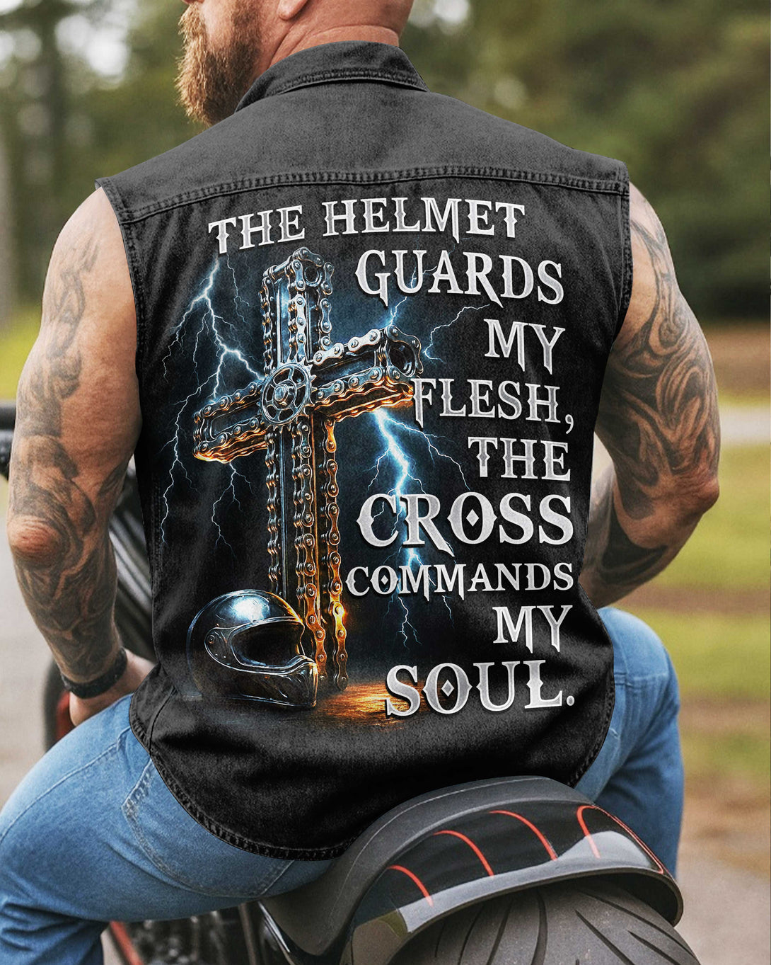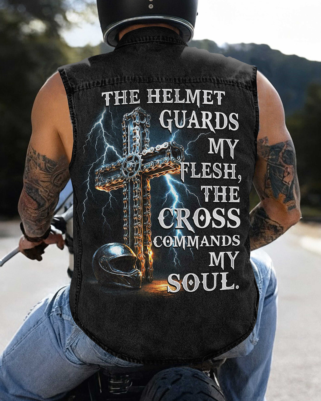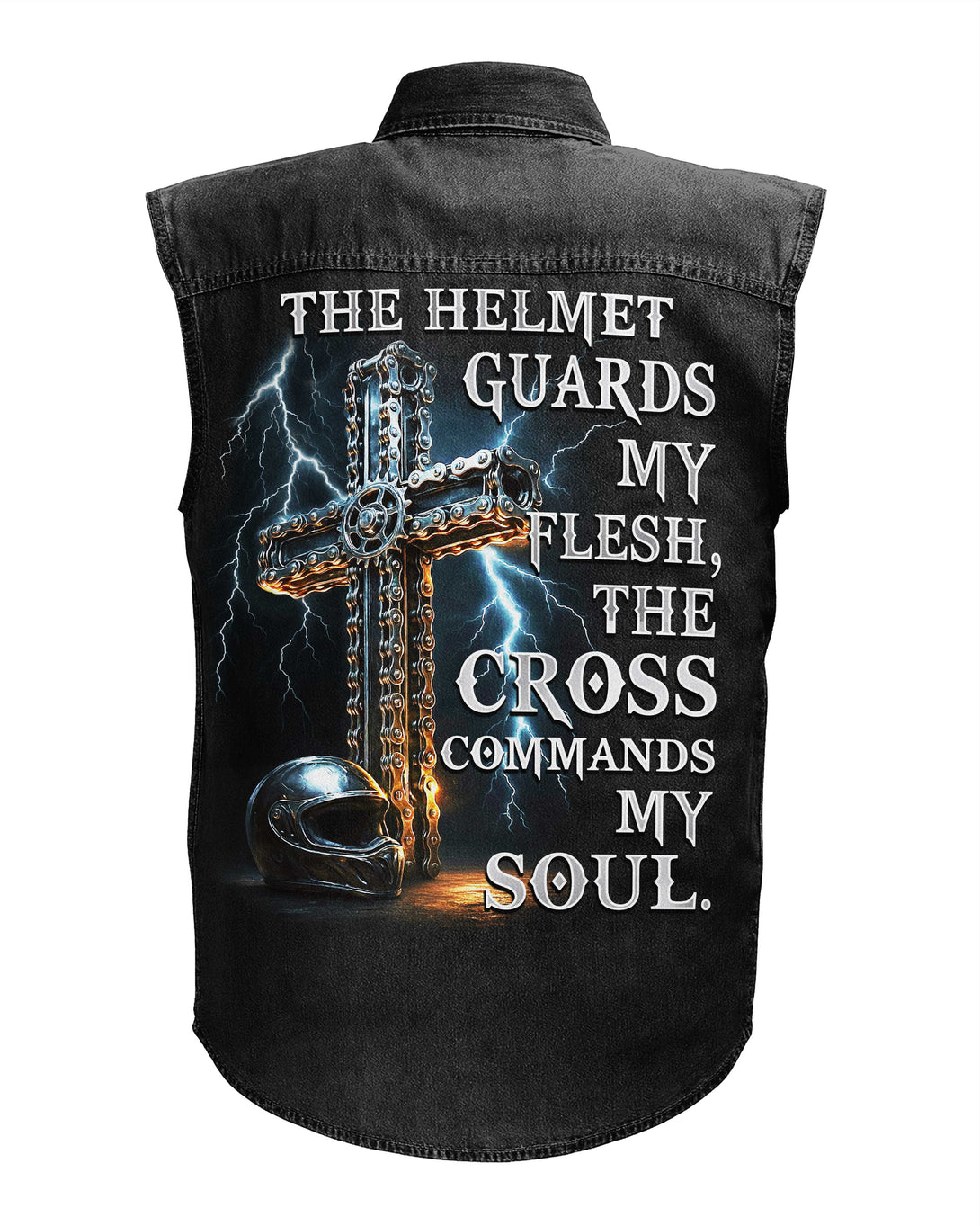 The Helmet Guards My Flesh Sleevesless Denim Shirt