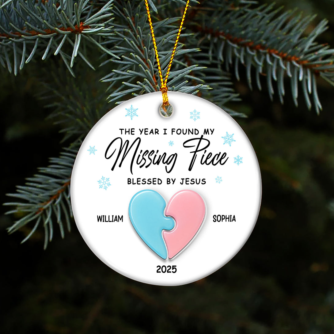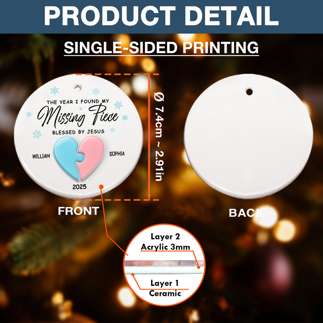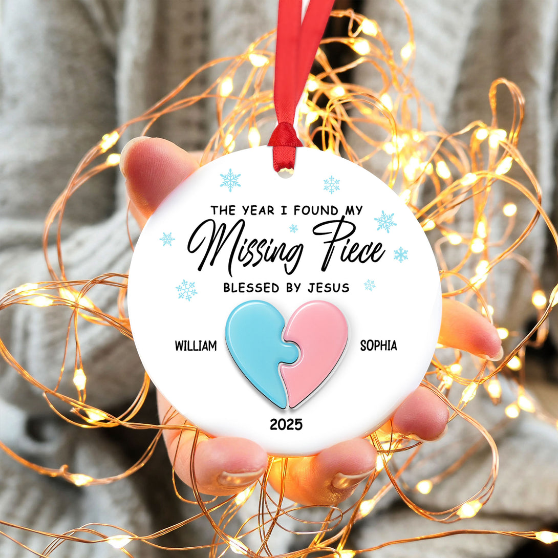 The Year I Found My Missing Piece Personalized Ceramic Ornament, Custom Couple Name