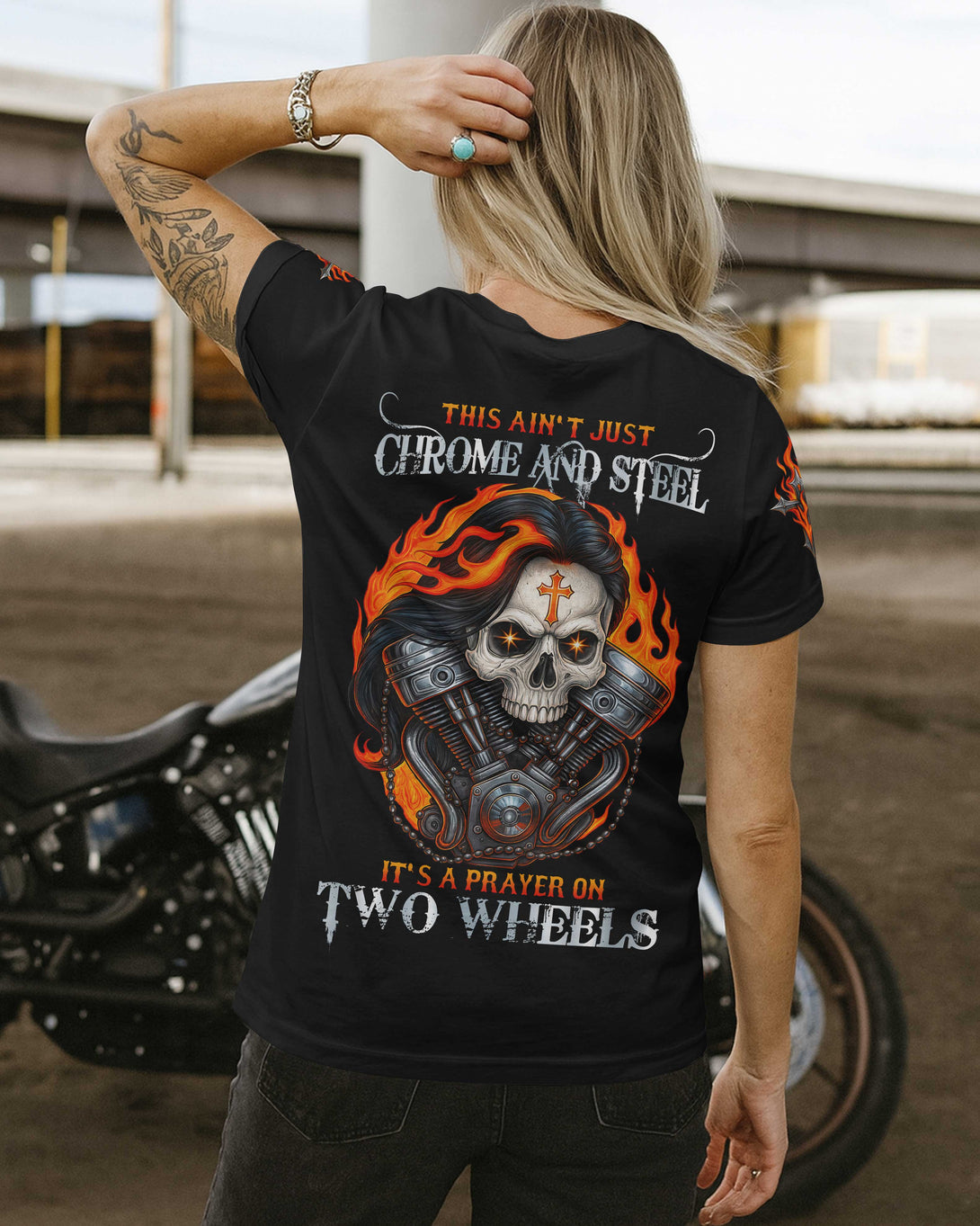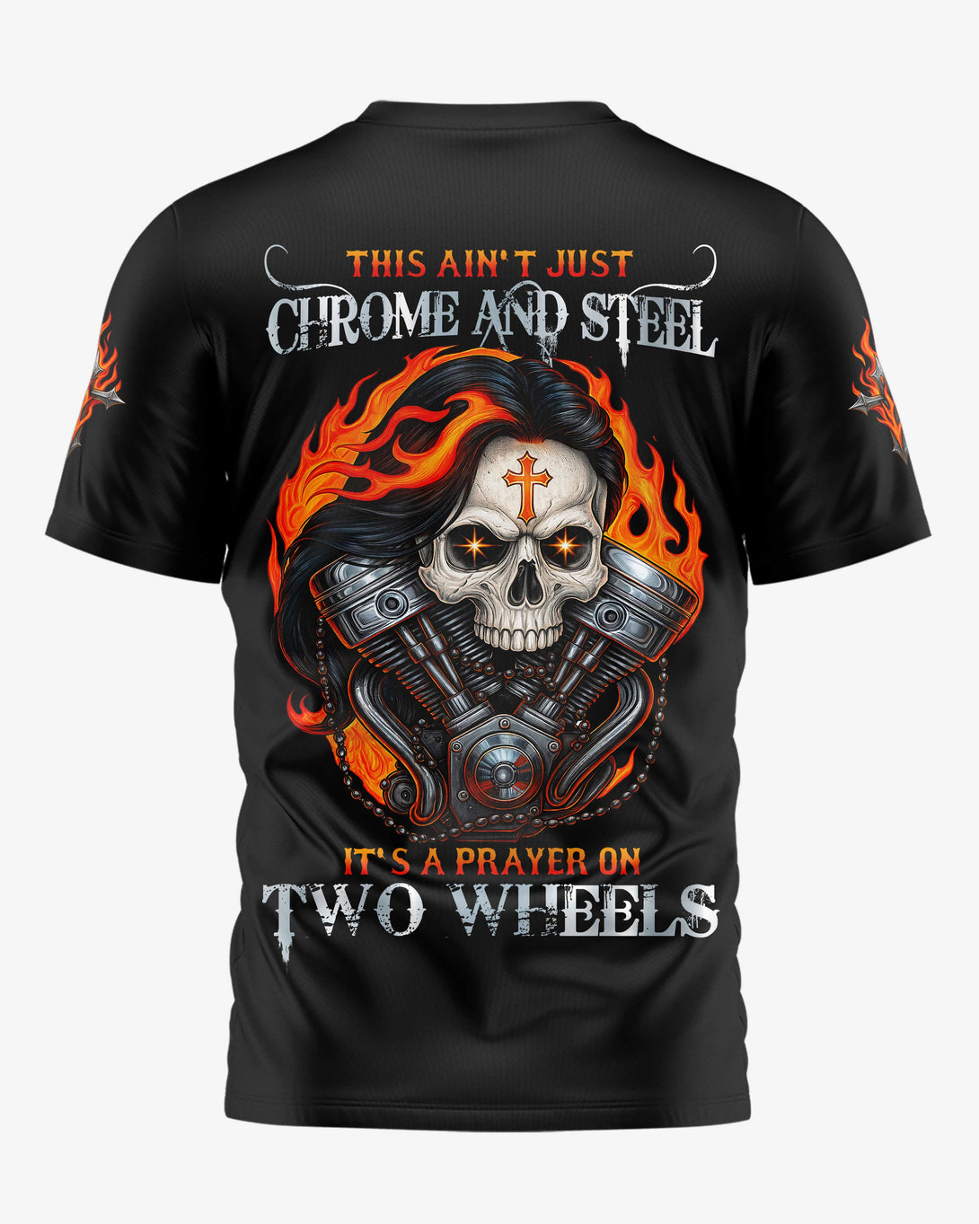 This Ain't Just Chrome And Steel It's A Prayer Of Two Wheels All Over Print T-Shirt