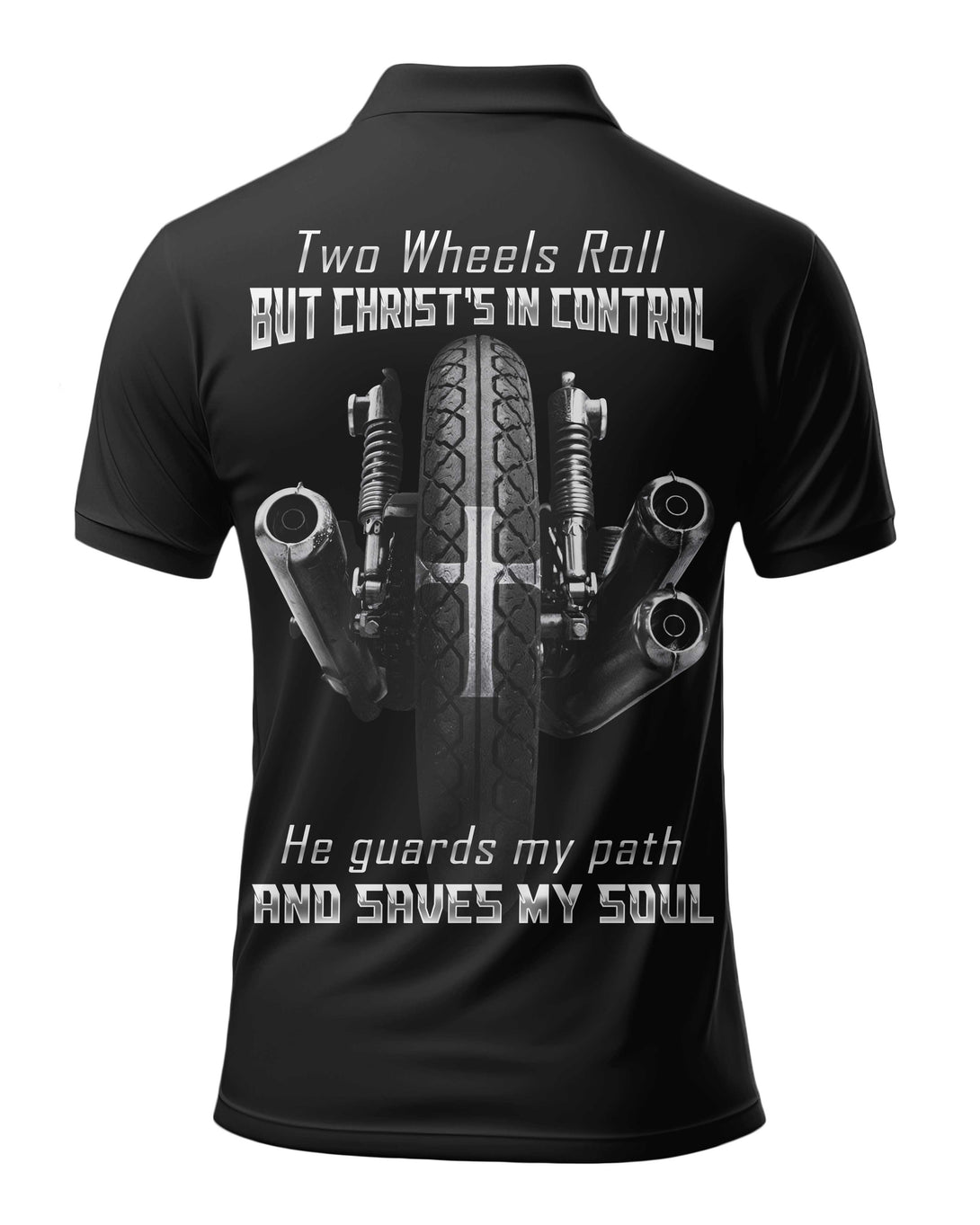 Two Wheels Roll But Christ's In Control All Over Print Polo