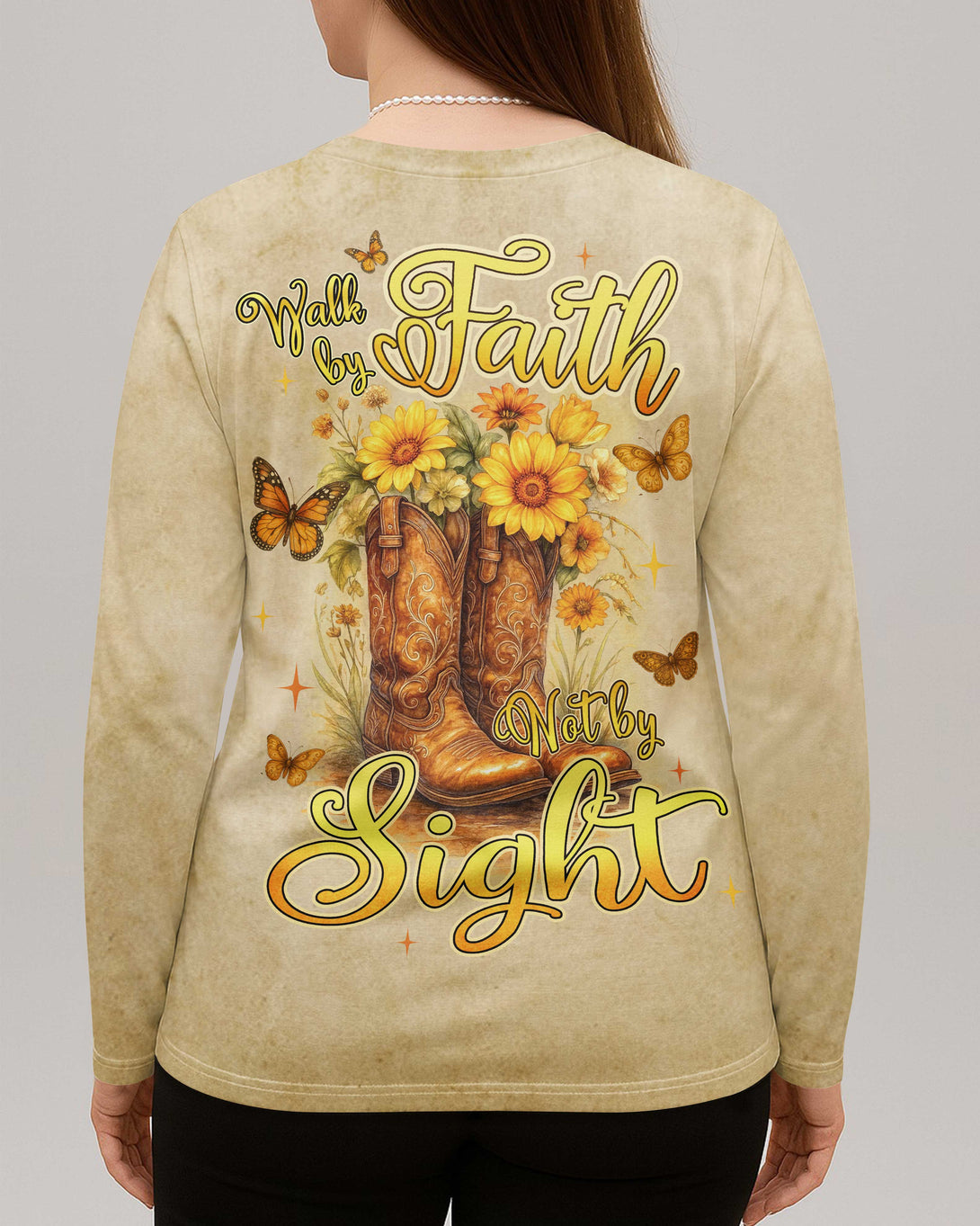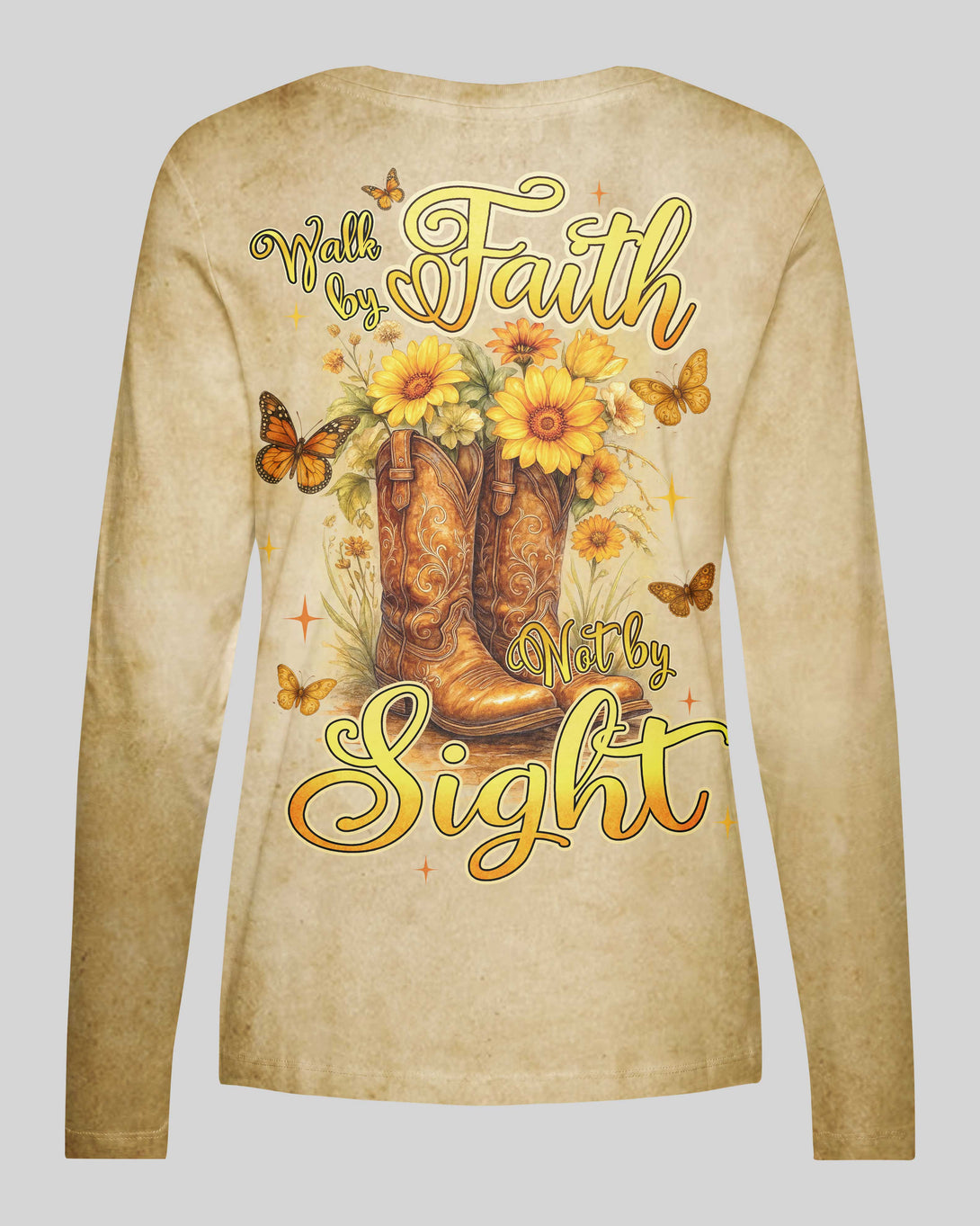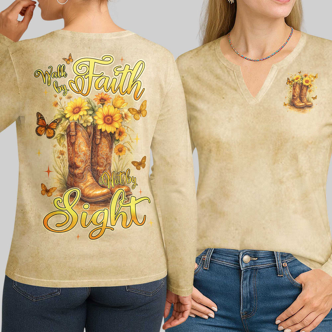 Walk By Faith Not By Sight All Over Print V-neck Long Sleeves Shirt