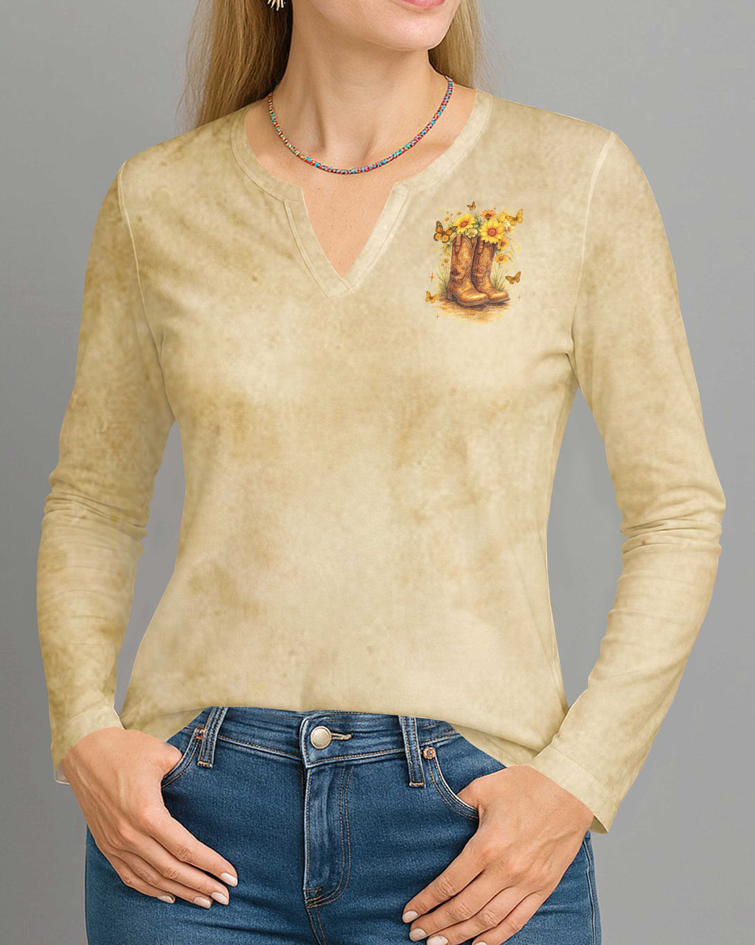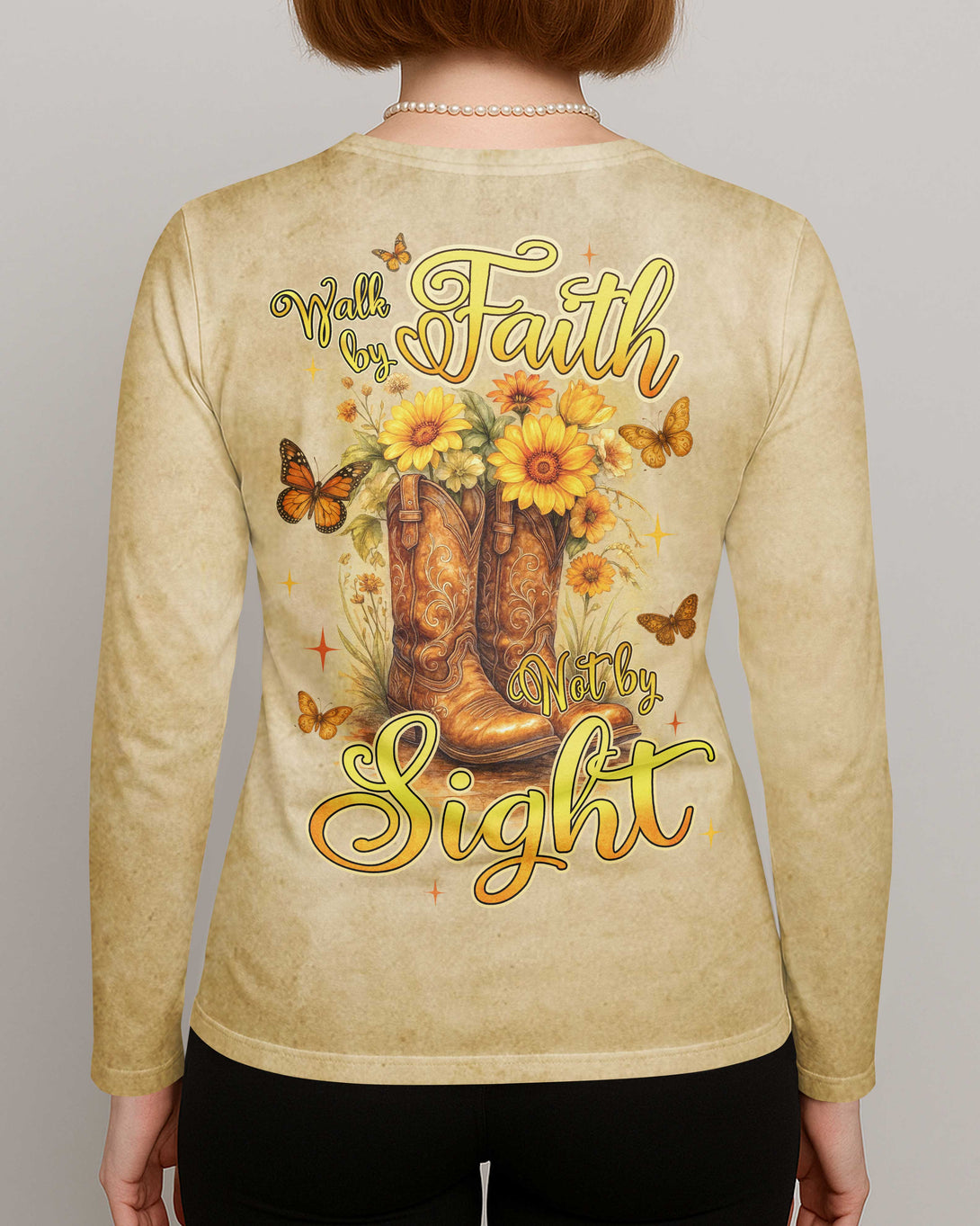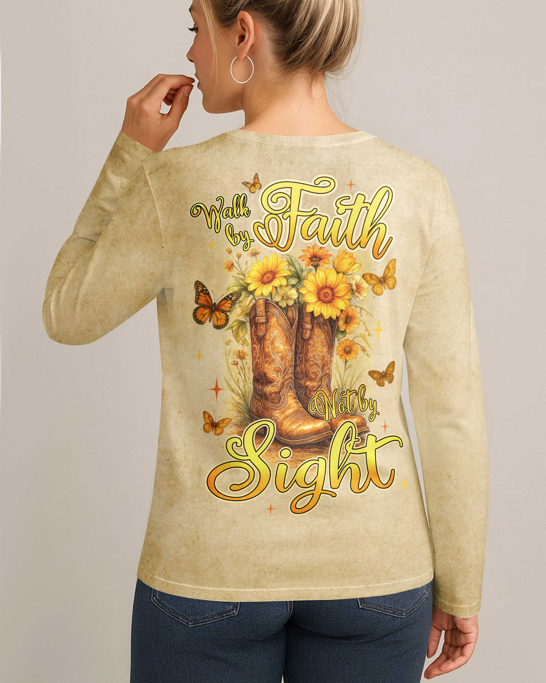 Walk By Faith Not By Sight All Over Print V-neck Long Sleeves Shirt