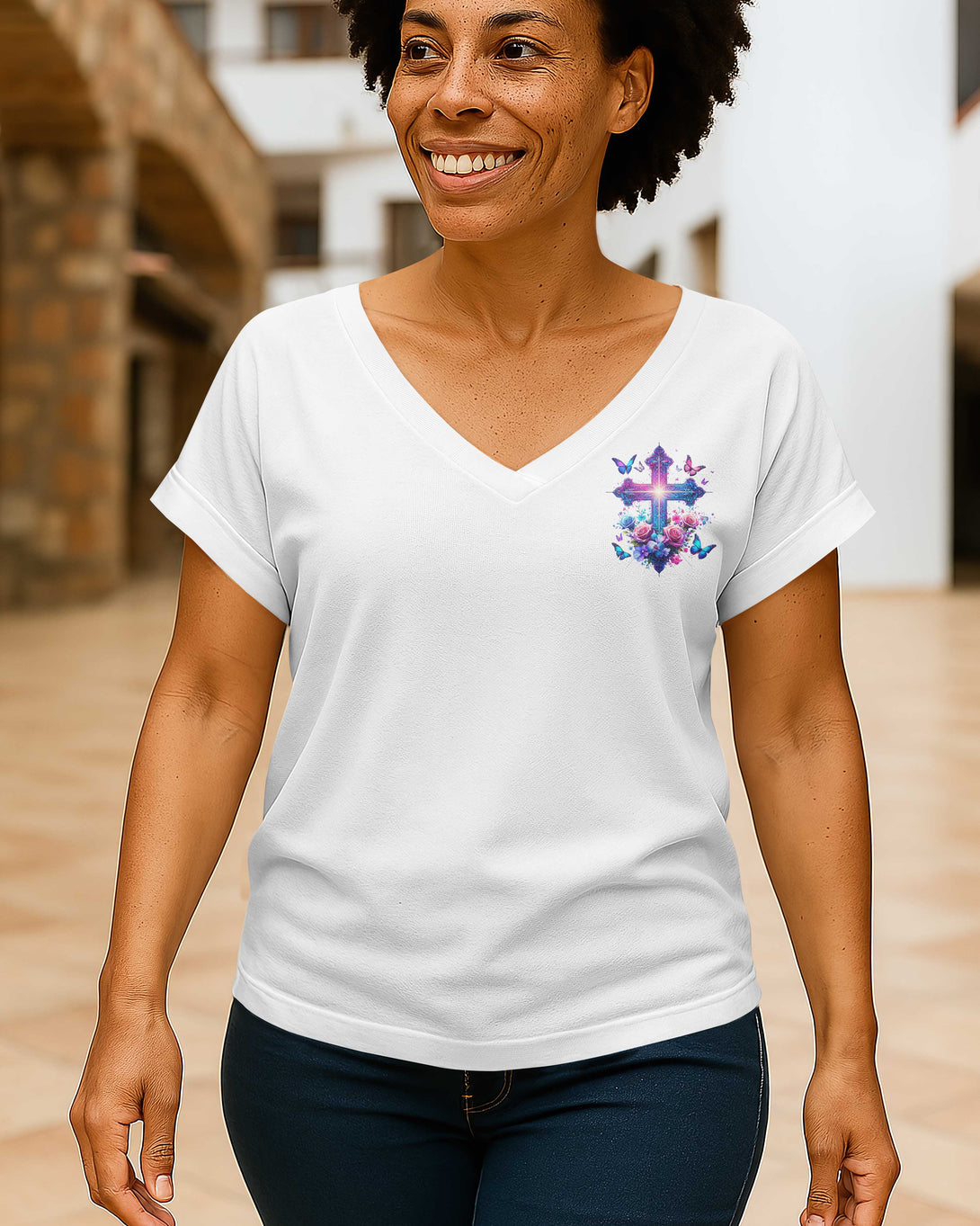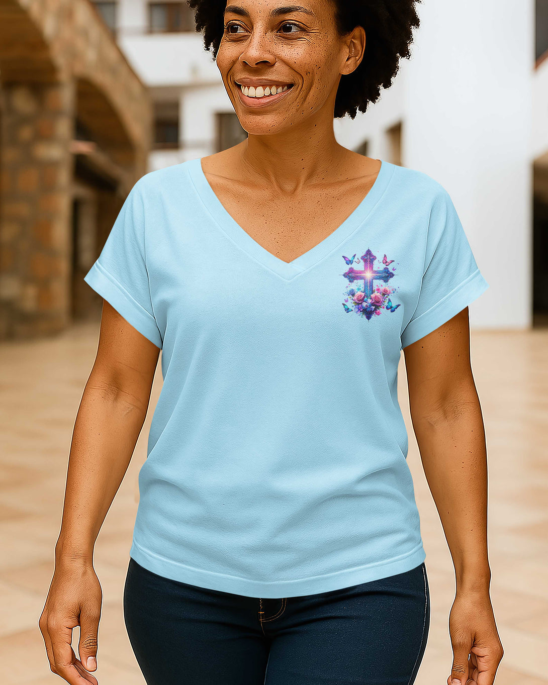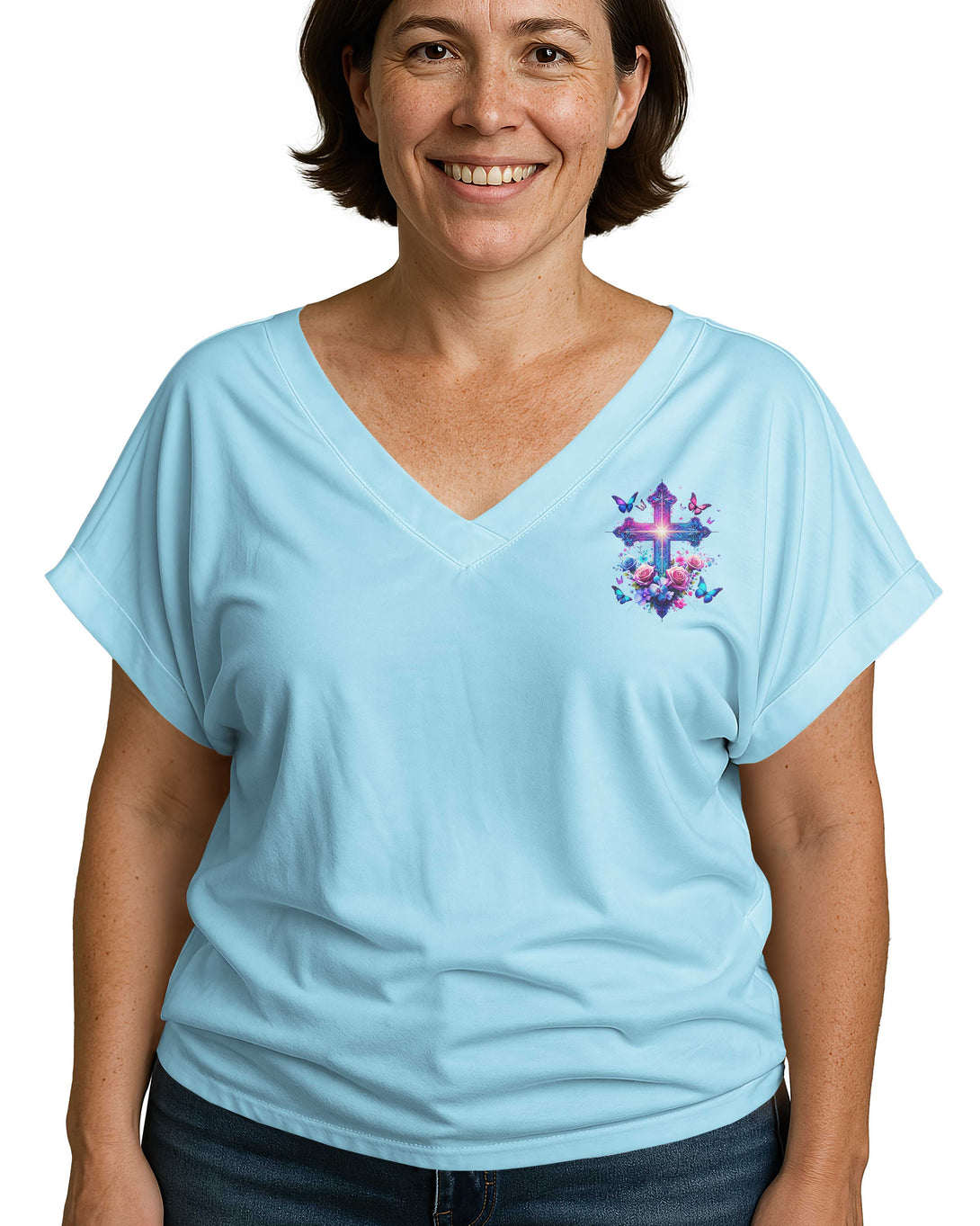 When Butterflies Appear V-neck Dolman Sleeves Shirt