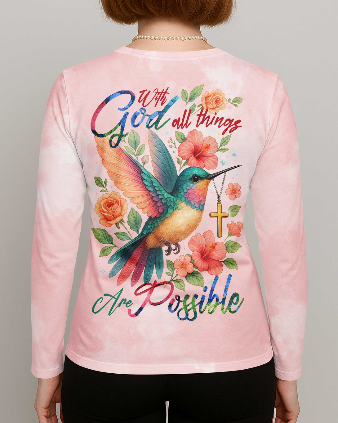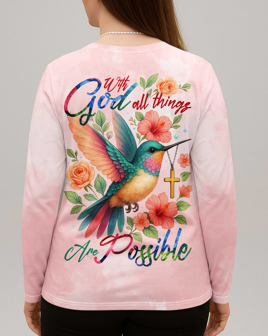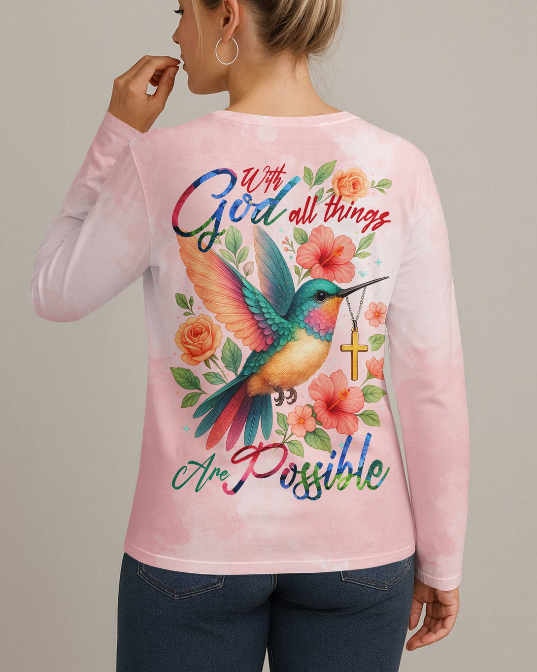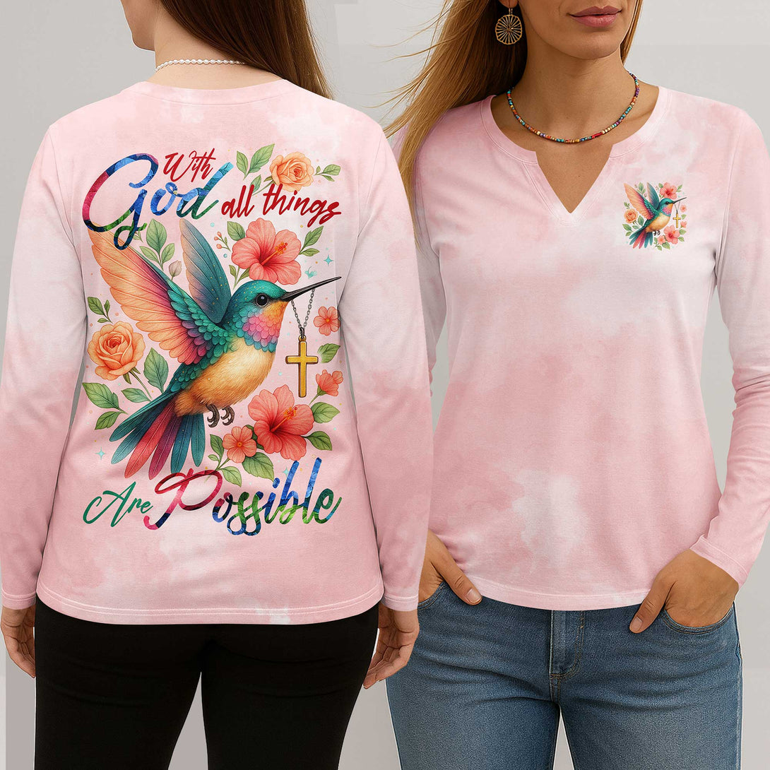 With God All Things Are Possible All Over Print V-neck Long Sleeves Shirt
