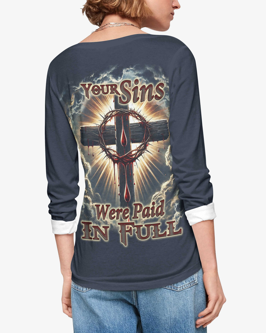 Your Sins Were Paid In Full All Over Print V-neck Long Sleeves Shirt